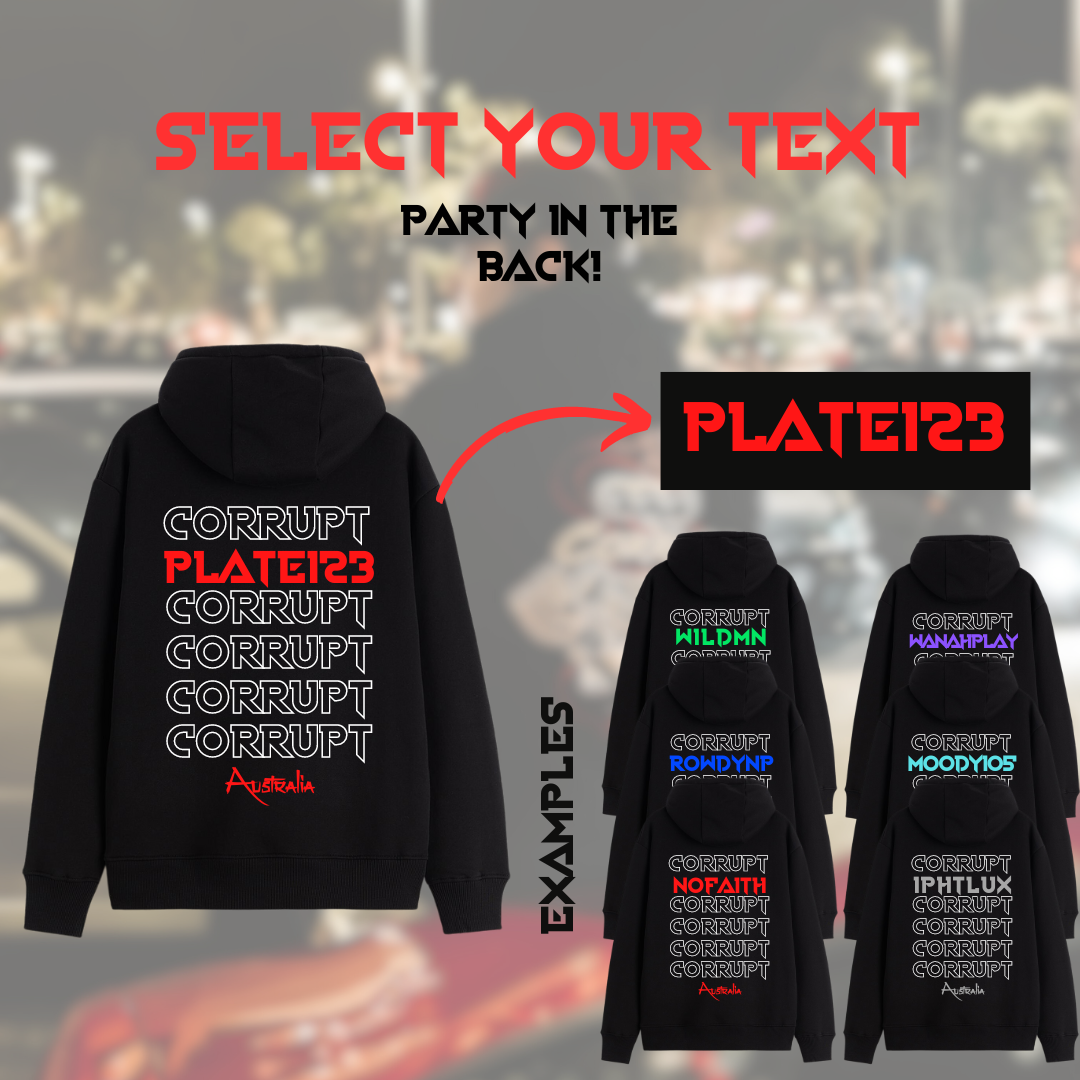 CUSTOMISE YOUR APPAREL - Add your number plate, Instagram and name all on the one garment!!